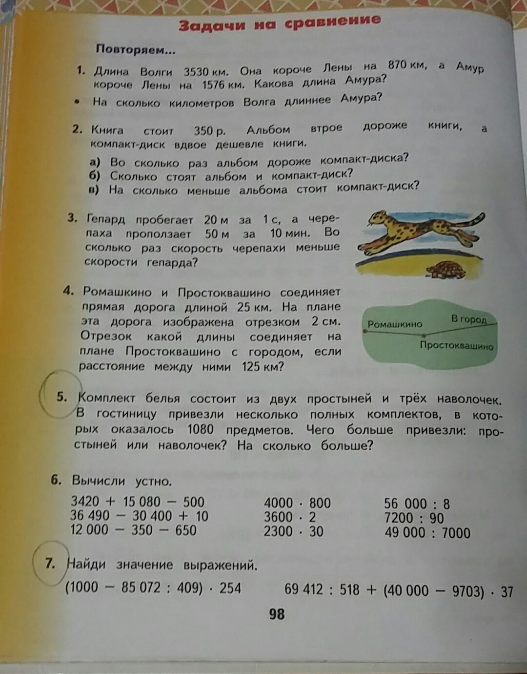 1) 3-2=1 (пр.) - на столько больше наволочек, чем простыней, в 1 комплекте
