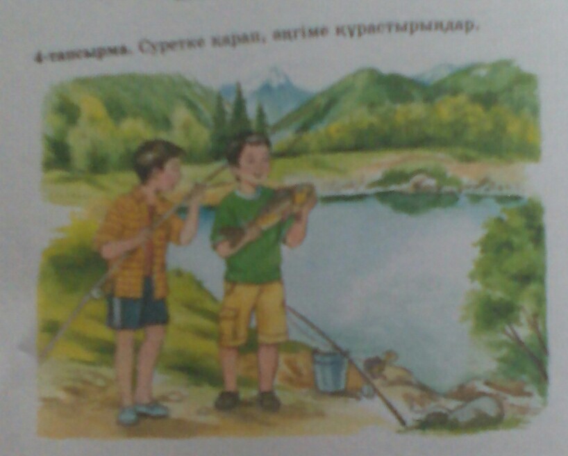 бiр кунi ерте турган Макс пен Олег балык аулауга шыкты.Олар 1 сагат балык аулады.Сагат уш болып Макс мунаип калды .По Олег куанды.