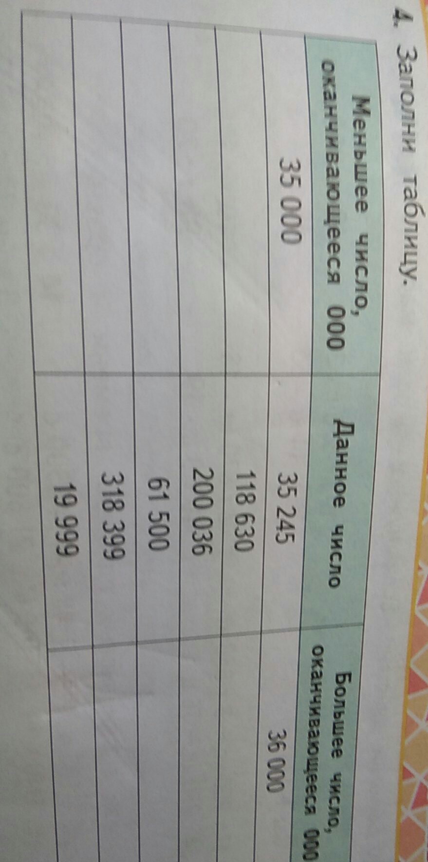 заполни таблицу. меньшее число оканчивающееся 000. данное число. большее число оканчивающееся 000.