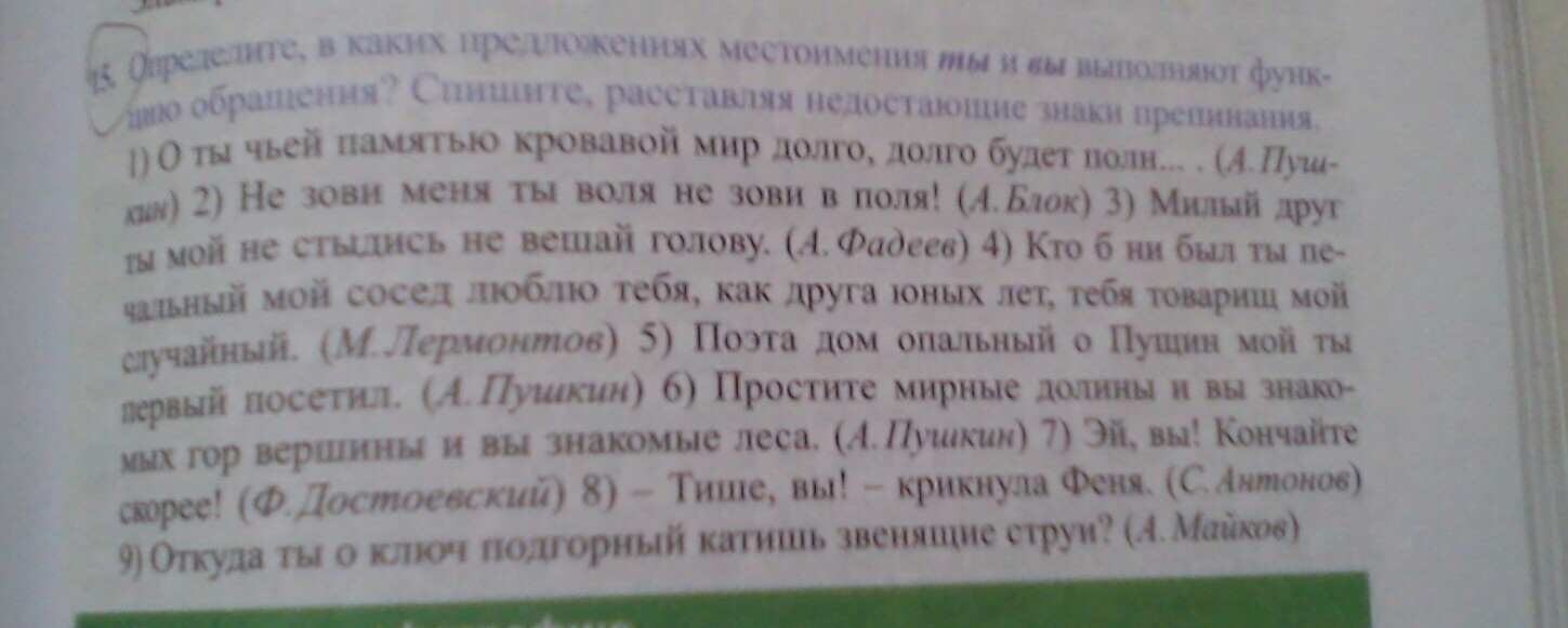 6)Простите мирные долины и вы,(обращ) знакомых гор вершины и вы,(обращ) знакомые леса.