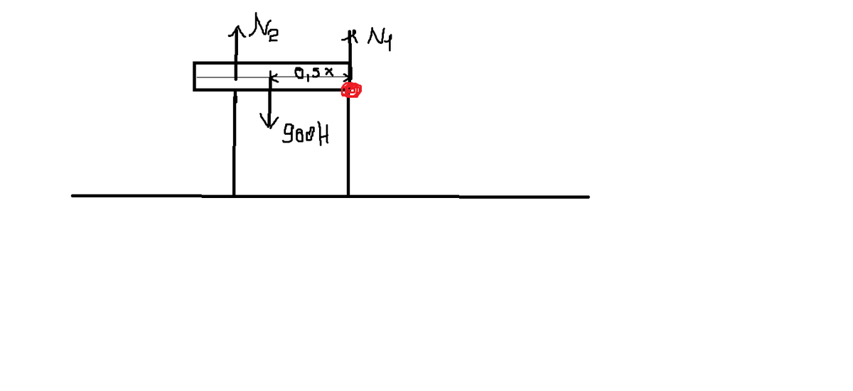смотри рисунок. красная точка - точка вращения. Моменты сил записываем относительно точки:( момент произведение силы на плечо)