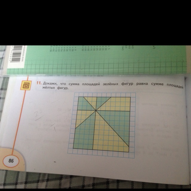 Сумма площадей равна, тк углы зеленых треугольников совпадают с углами жёлтых