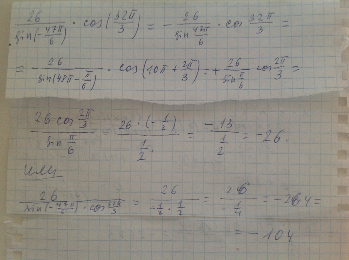 cos(32pi/3)=cos(2pi/3)=-1/2