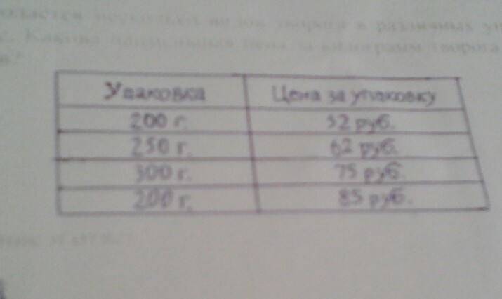 ответтье пж срочно нужно! в магазине продается несколько видов творога. какова наименьшая цена?