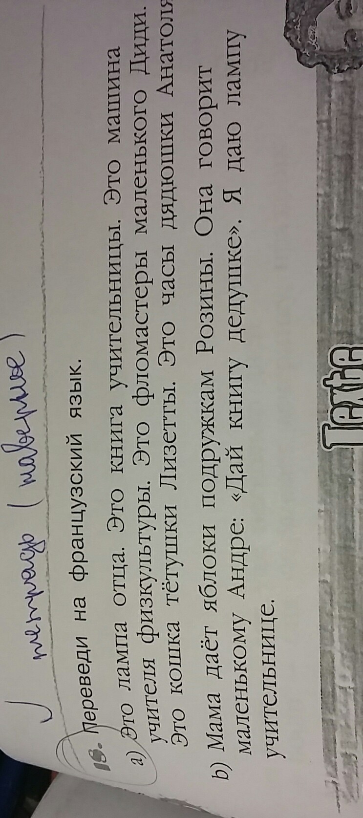 C'est la lampe de son père.C'est le livre du professeur.C'est une machine de professeurs d'éducation physique.C'est un des marqueurs de la petite Didi.C'est le chat de la tante de la Лизетты. C'est une montre de grand-père de l'Anatolie.