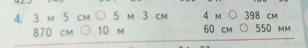 3м 5см < 5см. 4м > 398см