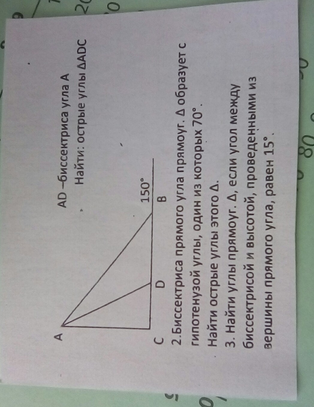 3) угол CDA = 90градусов -угол CAD= 75градусов
