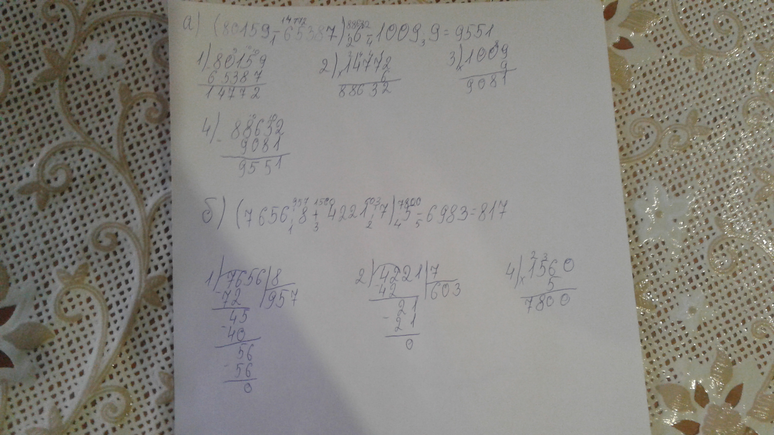б) (7656 : 8 + 4221 : 7) * 5 - 6983=