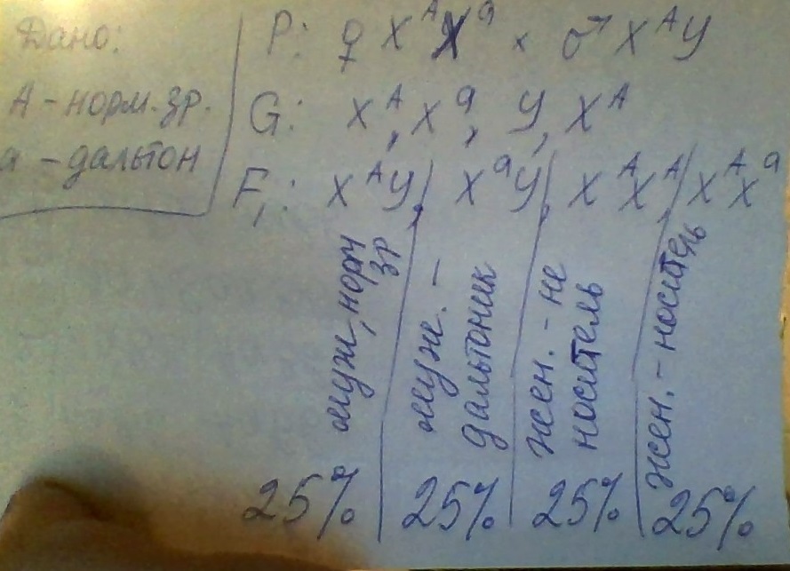Какие признаки будут иметь дети от брака женщины -дальтоника и мужчины с нормальным зрением? Ген дальтонизма (д) расположен в Х-хромосоме.