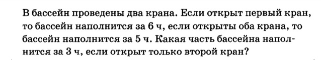 Примим за единицу(1) - работу по наполнению бассейна. Время 1 крана дано - 6 часов. Найдем производительность первого крана: