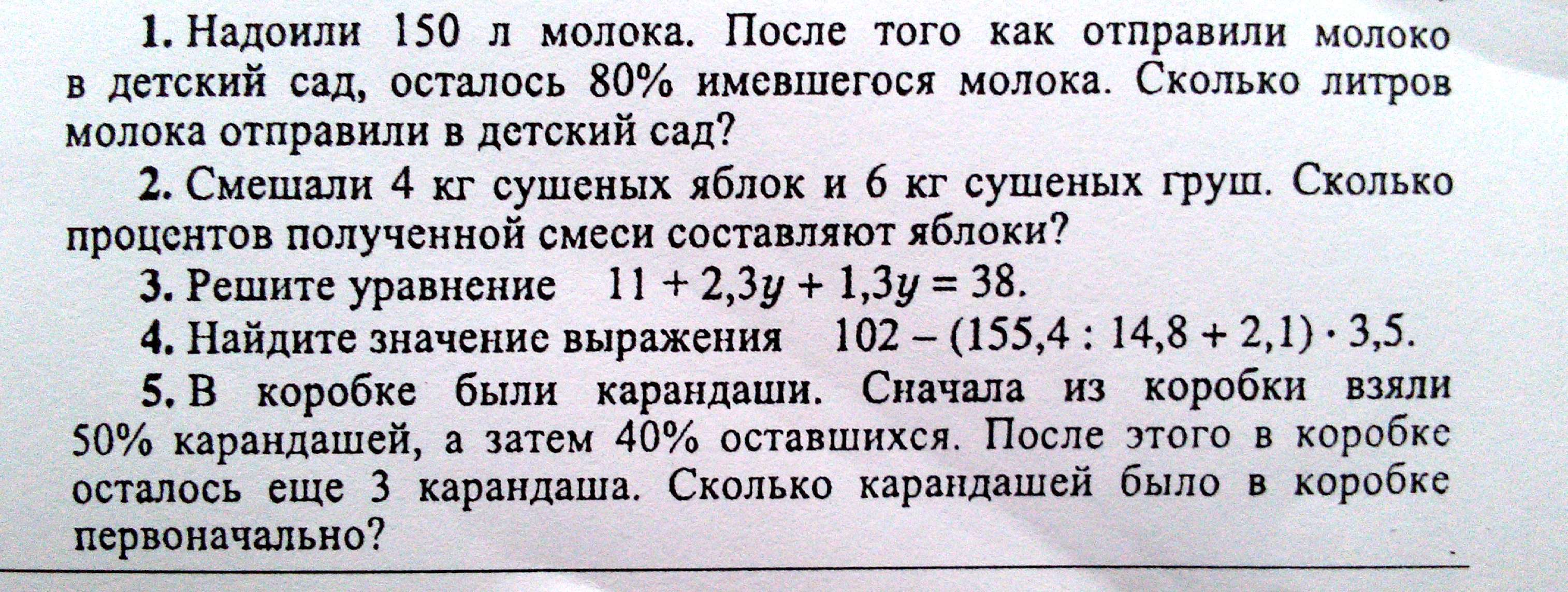 2) 150 * 20% = 150 * 20/100 = 30 л отправили в детсад