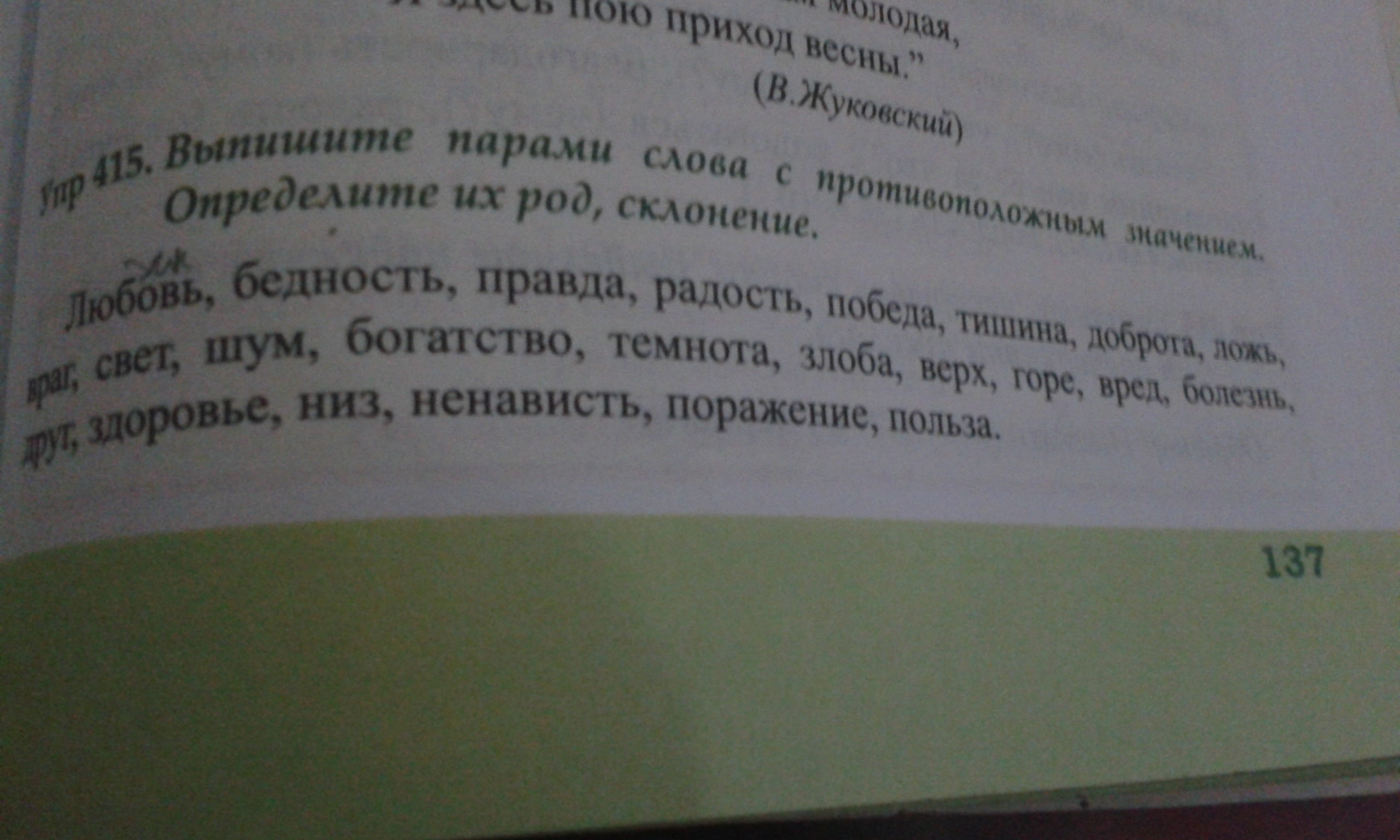 свет-темнота,шум-тишина,богатство-бедность,темнота-яркость,злоба-доброта,верх-низ,горе-радость,вред-польза,болезнь-здоровье,друг-враг,здоровье-болезнь,низ-верх, ненависть-радость,поражение-победа,польза-вред.