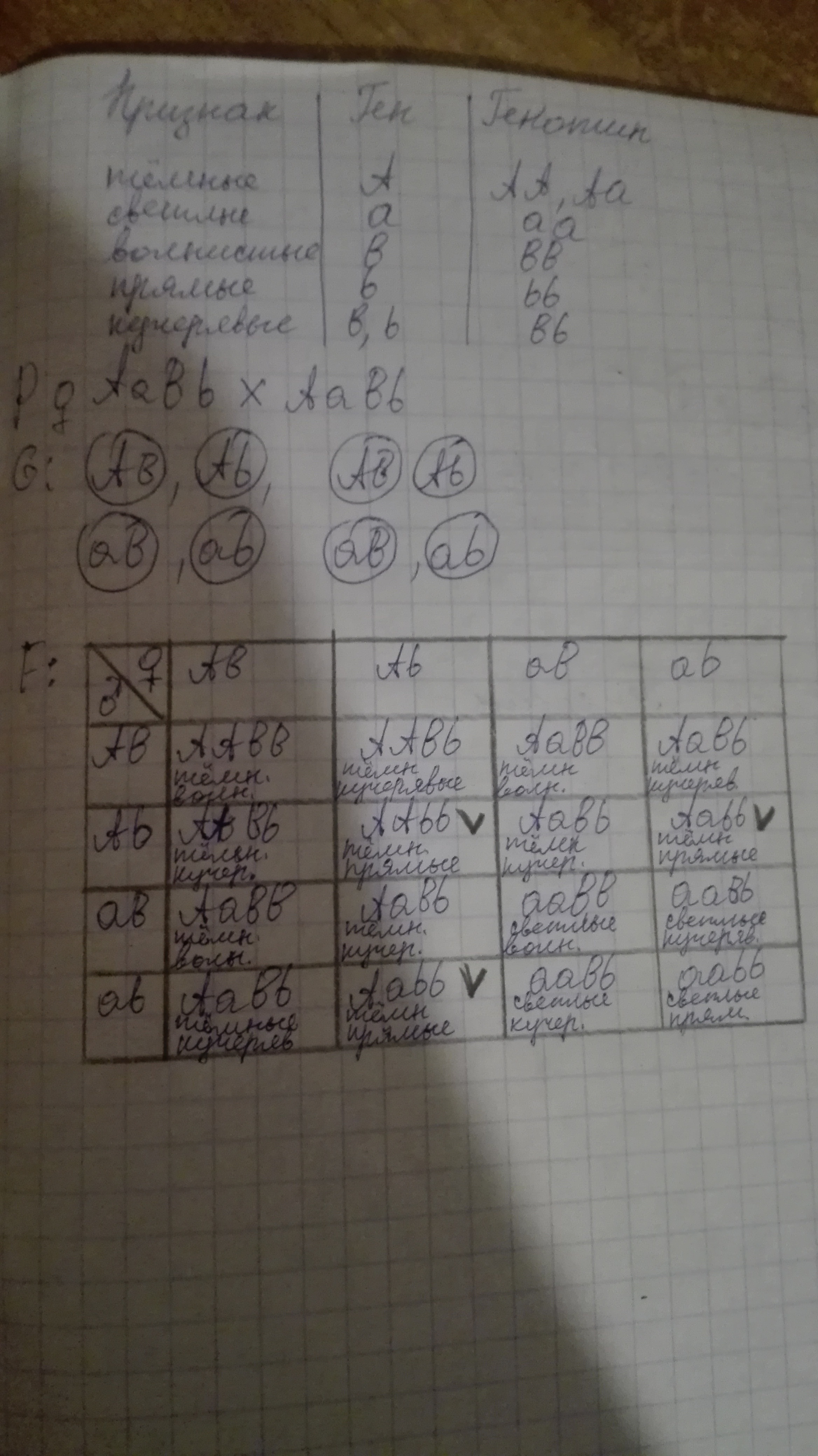 Супруги имеют темные(А) и волнистые волосы(а), у них родился ребёнок со светлыми, но кудрявыми волосами. Определить вероятность рождения в этой семье темноволосого ребёнка с прямыми волосами, если известно что ген кудрявых волос обнаруживает неполное доминирование(В)