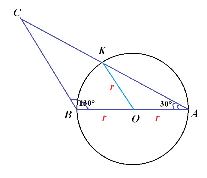 Пусть r-радиус круга, тогда в ∆АВС сторона АВ=2r.