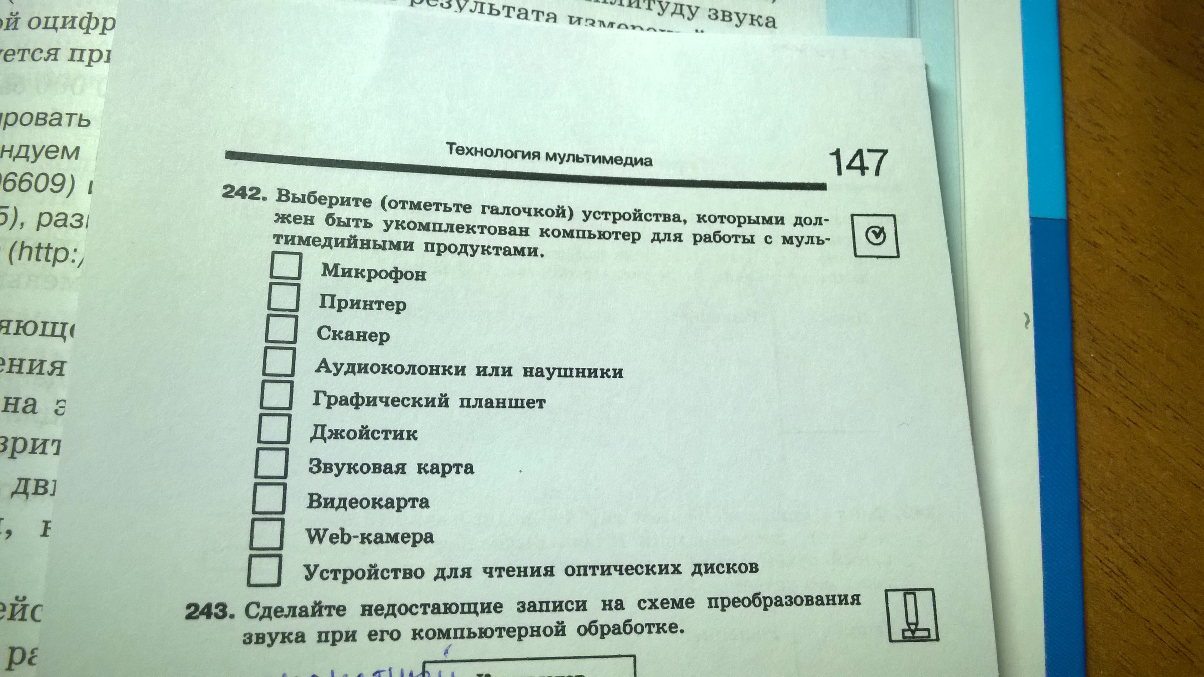 242) Аудиоколонки или наушники,Звуковая карта,Видеокарта