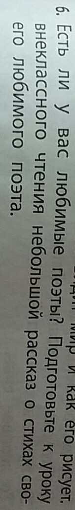 Есть ли у вас любимые поэты? Подготовьте к уроку внекласного чтения небольшой рассказ о стихах своего любимого поэта. помогите !