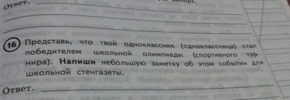 На днях мы узнали что наш одноклассниик .............. стал победителем школьной олимпиады по математике. Он занял 1-ое место и получил медаль!