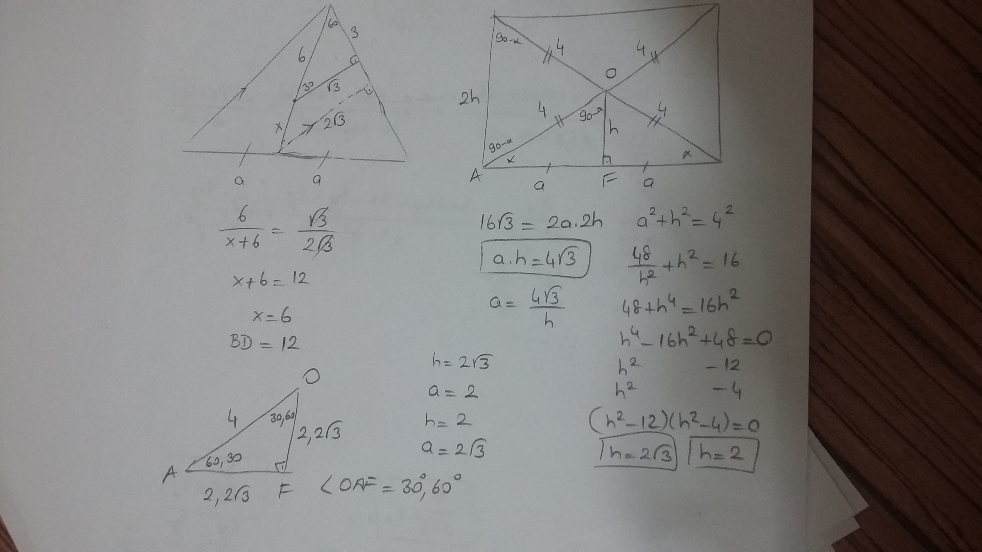 3. OF=1/2AB. S(ABCD)=AB*CD. AB=S/CD=16 корней из 3/4=4 корней из 3.