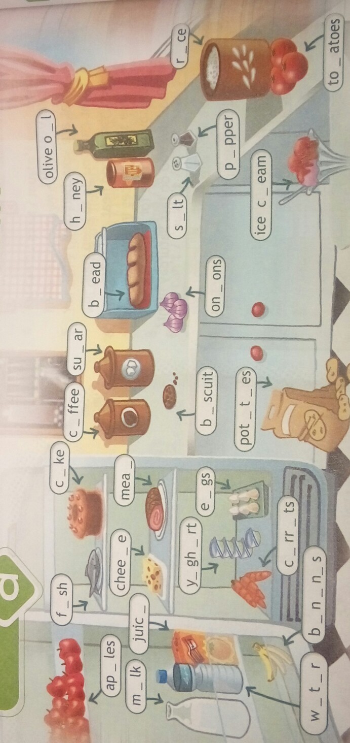 fish apples milk water onions tomatoes olive oil,juice cheese eggs carrots patatoes biscuit bananas cake meat rice papper honey salt sugar bread coffee yogurt water ice cream