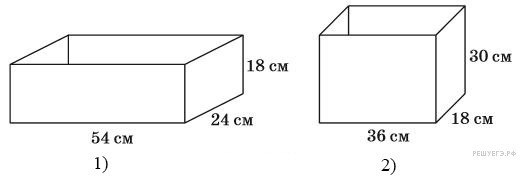 В какую из двух коробок, изображенных на рисунке, поместится больше кубиков с ребром, равным 6 см? Помогите, срочно надо!!!!!