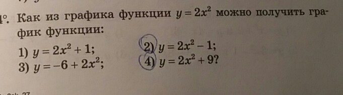 Построенный график функции y=2x² на 1 единицы сдвинули вниз, получаем график функции y=2x² - 1.