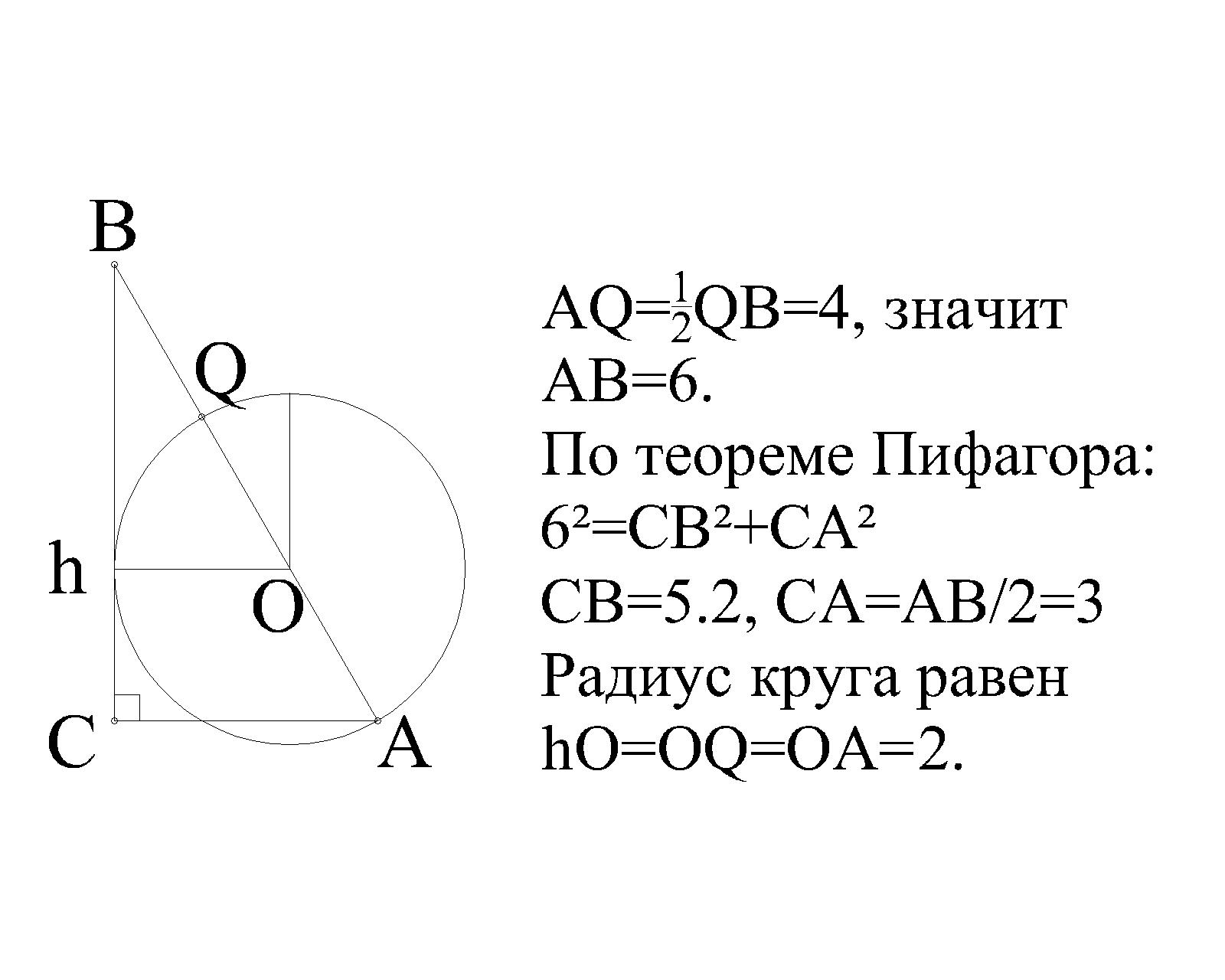 В прямоугольном треугольнике АВС угол С=90 градусов, угол А = 60 градусов. На стороне АВ взята точка Q. QB/QA=1/2. Найдите радиус окружности, проходящей через точки Q и А и касающееся прямой, содержащей ВС, если QA=4.
