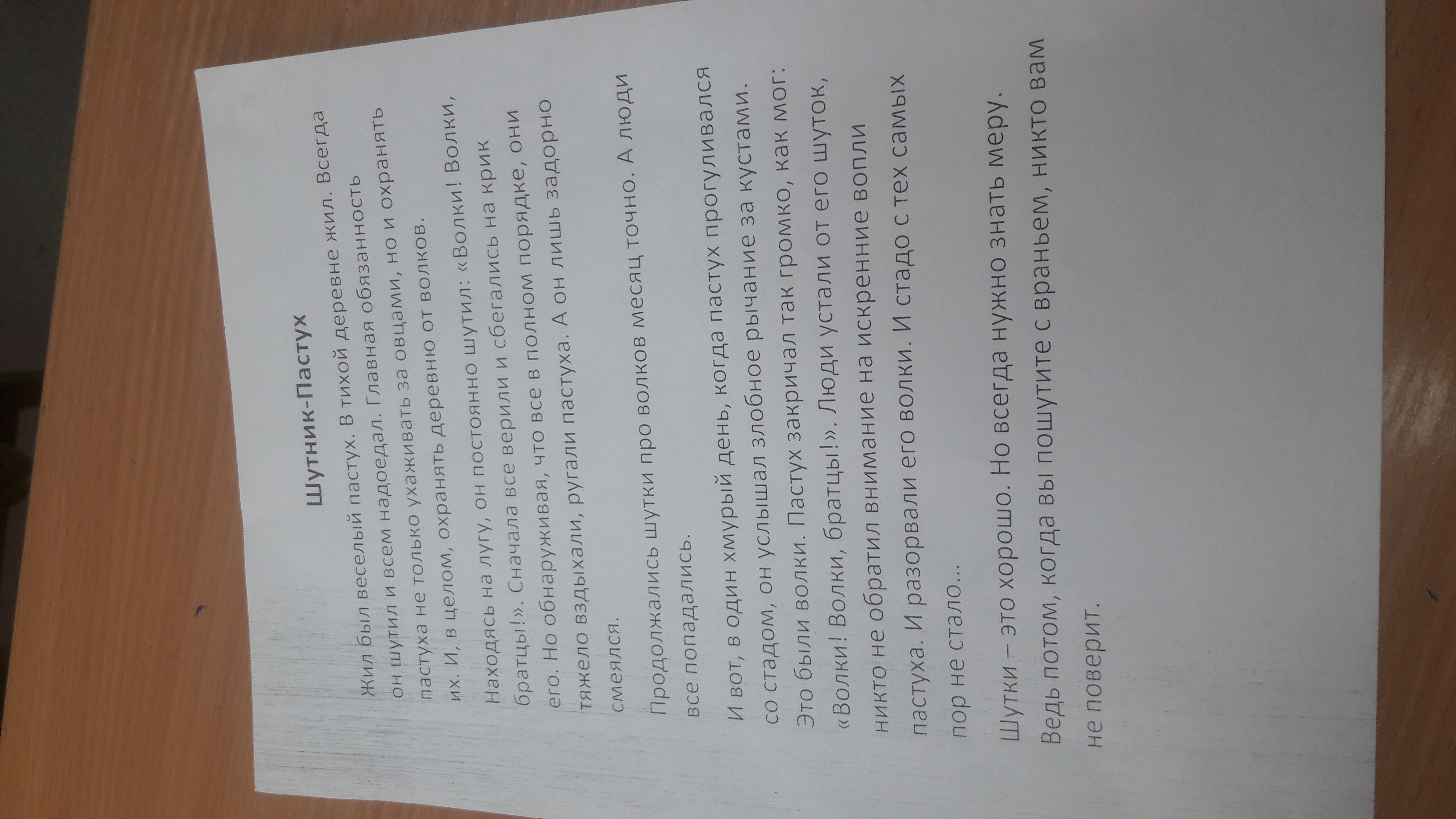 Jester-shepherd lived a cheerful shepherd. He lived in a quiet village. All the time he joked and bored everyone. The main duty of the shepherd is not only to take care of the sheep, but also to protect them and, in general, to guard the village from the wolves while on loury, he constantly joked: "Wolves! Wolves, brothers! ". At first all believed and ran to his cry. But discovering that everything is in order, they sighed sighing, scolded the shepherd. And he only laughed fervently. And people continued jokes about the wolves a month for sure. All noriadalis. And now, on one gloomy day, when the shepherd was walking with the herd, he heard a malicious growl behind the bushes. They were wolves. The shepherd cried out as loudly as he could: "Wolves! Wolves, brothers People are tired of his jokes, no one has paid attention to the sincere cries of nastukha. His wolves were torn. And the herd has not since ... jokes are good. But you always need to know the measure. After all, when you joke with lies, no one will later believe you.