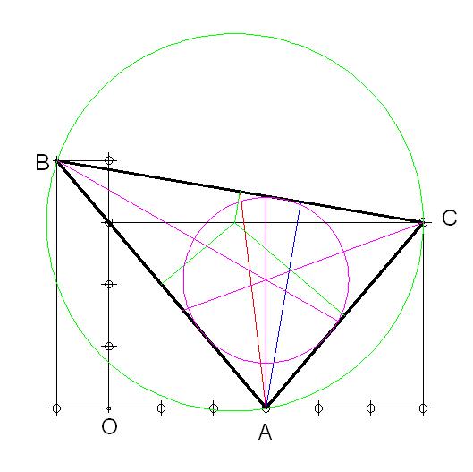 1. Треугольник АВС задан координатами своих вершин в прямоугольной декартовой системе координат. А(3, 0), В(-1, 4), С(6, 3); Вычислить: а) длины сторон; б) углы; в) площадь; г) длины биссектрисы, медианы и высоты, проведенных из вершины А; д) радиусы и центры вписанной и описанной окружностей.