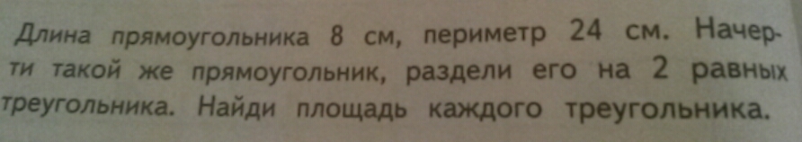 3) (4 * 8) : 2 = 16 кв.см площадь каждого треугольника
