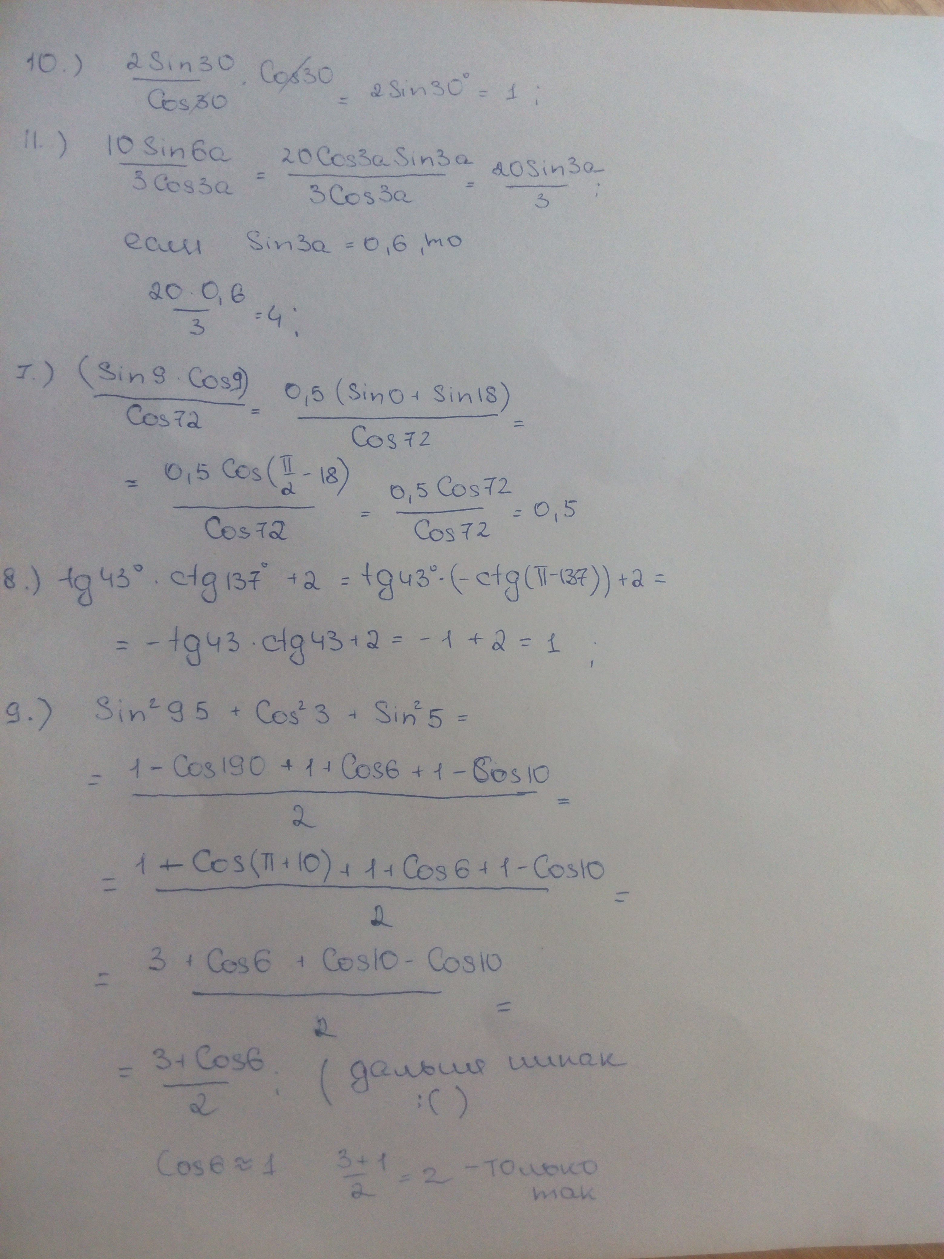 11) 10sin6a / 3cos3a, если sin3a=0.6