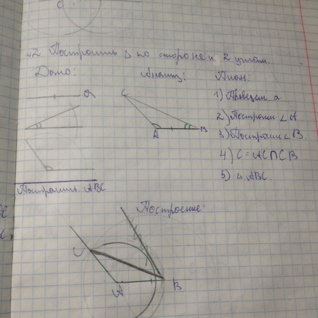 Построить треугольник по стороне и двум прилежащих к ней углам. Оформление как у задачи по геометрии.