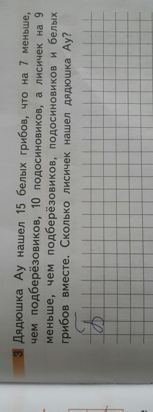 1) 15+7= 22 подберезовика
