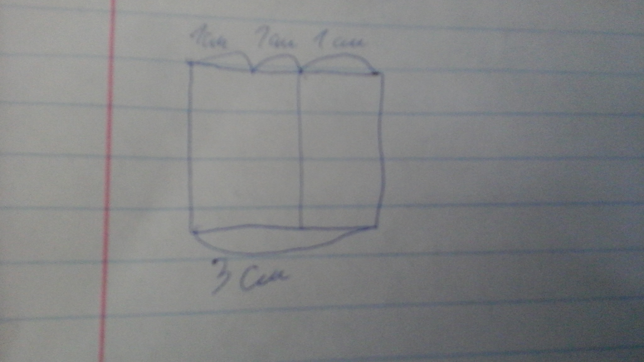 Всего 3см. 2 = 2 см. 3-2=1