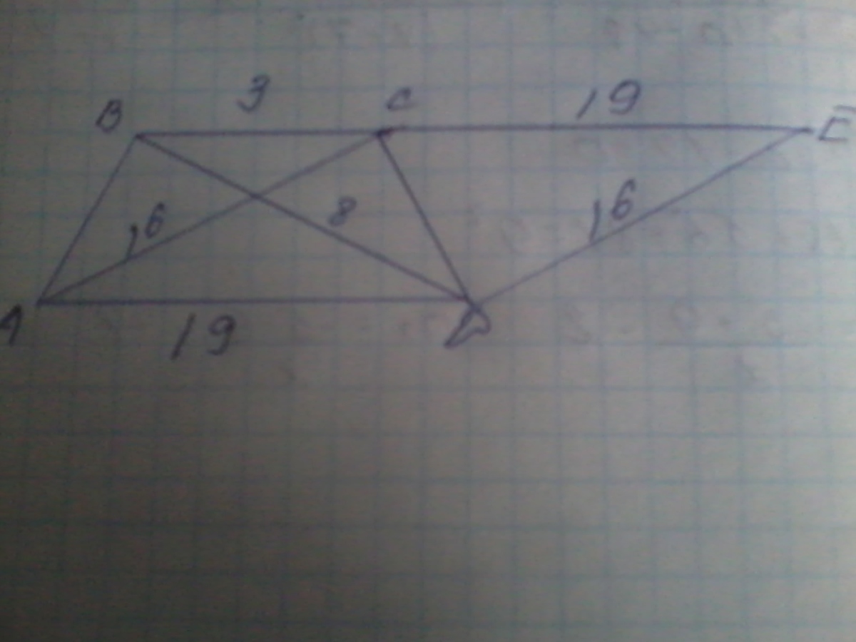 Соеденив получившуюся точку Е с D получим треугольник со сторонами 22,16,8