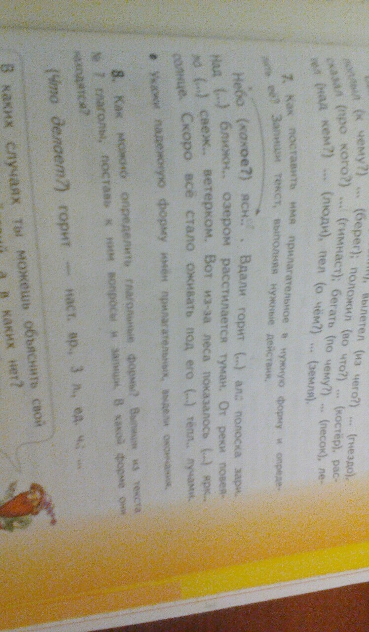 Небо ясное, вдали горит полоска, над озером расстилается туман.