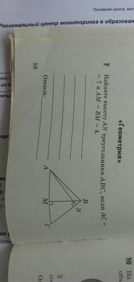 S(АВС)=АС*ВМ/2=7*4/2=14.