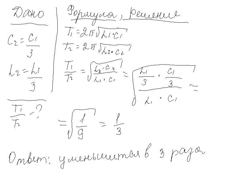 Колебательный контур состоит из конденсатора емкостью С и катушки индуктивностью Л. Как изменится период электромагнитных колебаний в этом контуре, если емкость конденсатора, и индуктивность катушки уменьшить в 3 раза?