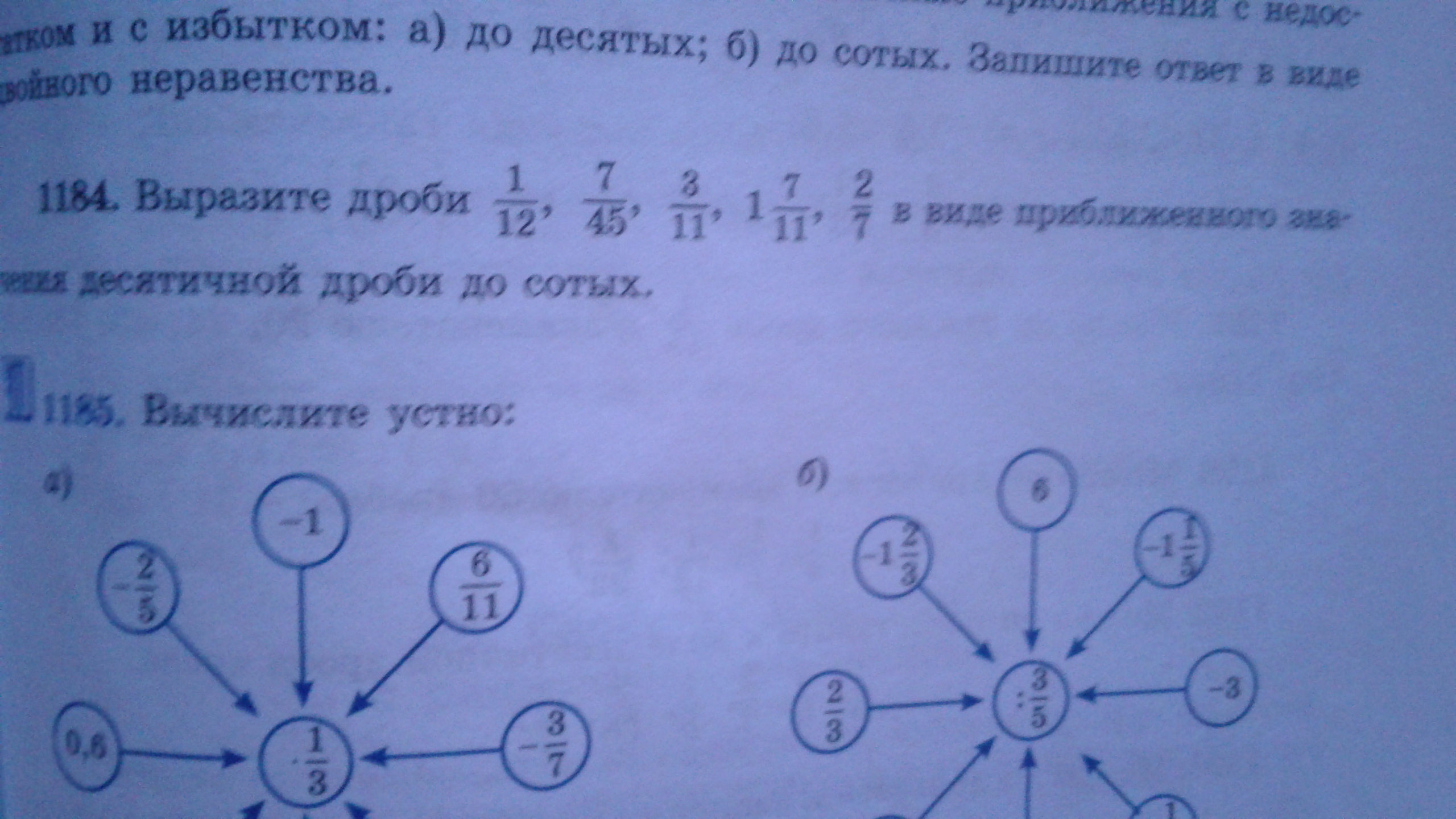 1/12 приближённо 0,1 ; 7/45 приближённо 0,2 ; 3/11 приближённо 0.3 ; 18/11 приближённо 1,6 ; 2/7 приближённо 0,3