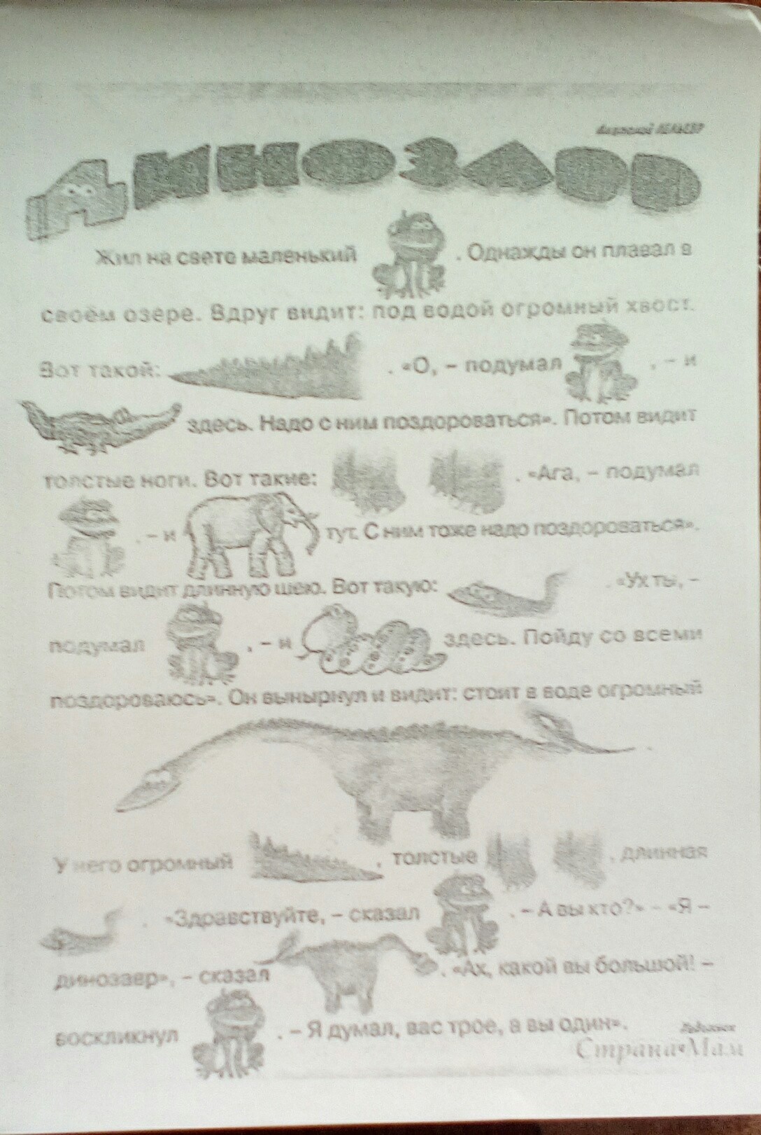 Лягушонок, острый, лягушонок, крокодил, толстые, лягушонок, слон, с длинным языком, лягушонок, змея, динозавр, хвост, лапы, шея, лягушонок ,Динозавр, лягушонок.