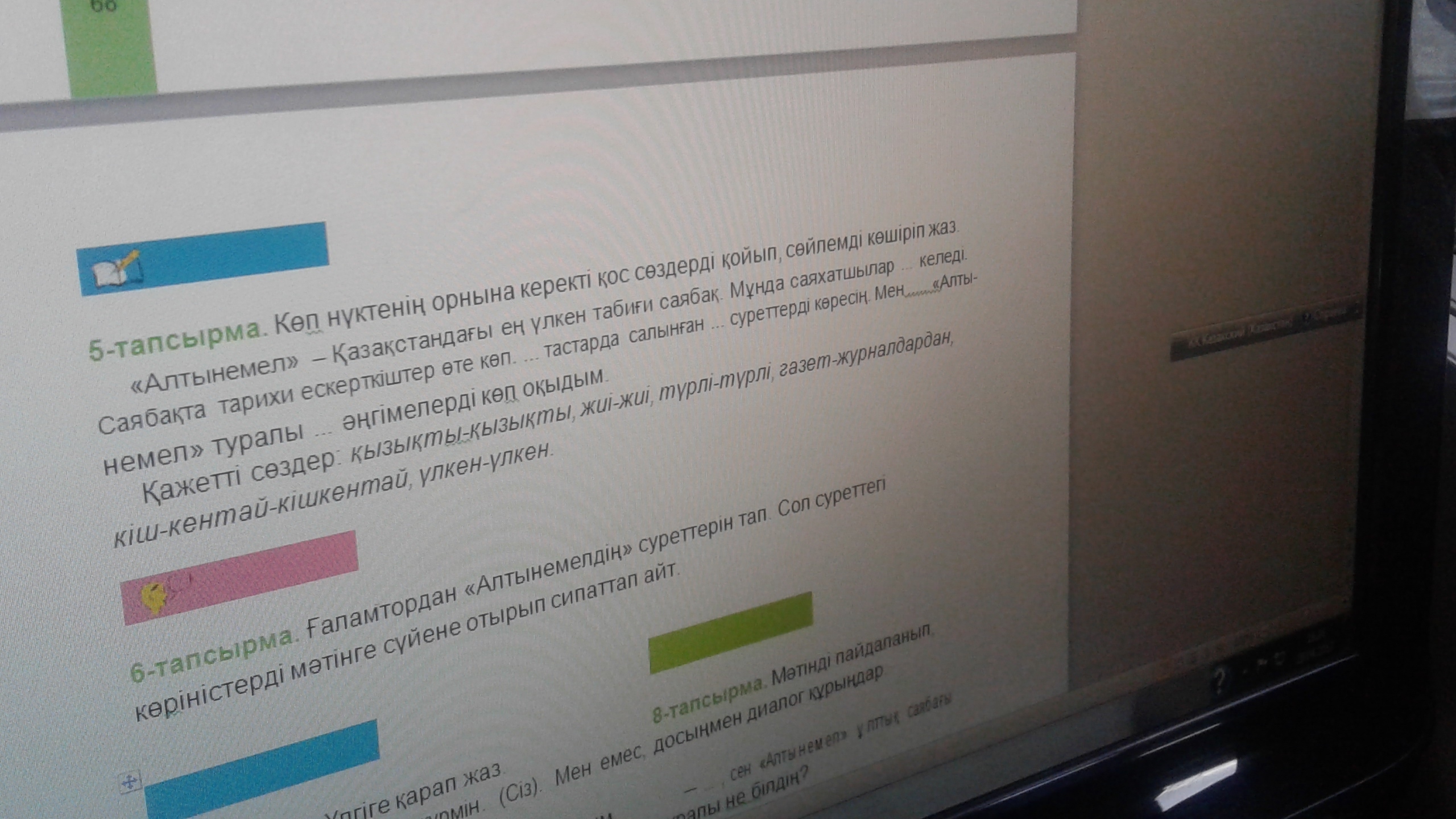 Мұнда саяхатшылар жиі-жиі келді. Түрлі-түрлі тастарда салынған үлкен-үлкен суреттерді көресің.Мен газет-журналдардан "Алтынемел" туралы қызықты-қызықты əңгімерлерлді көп оқыдым
