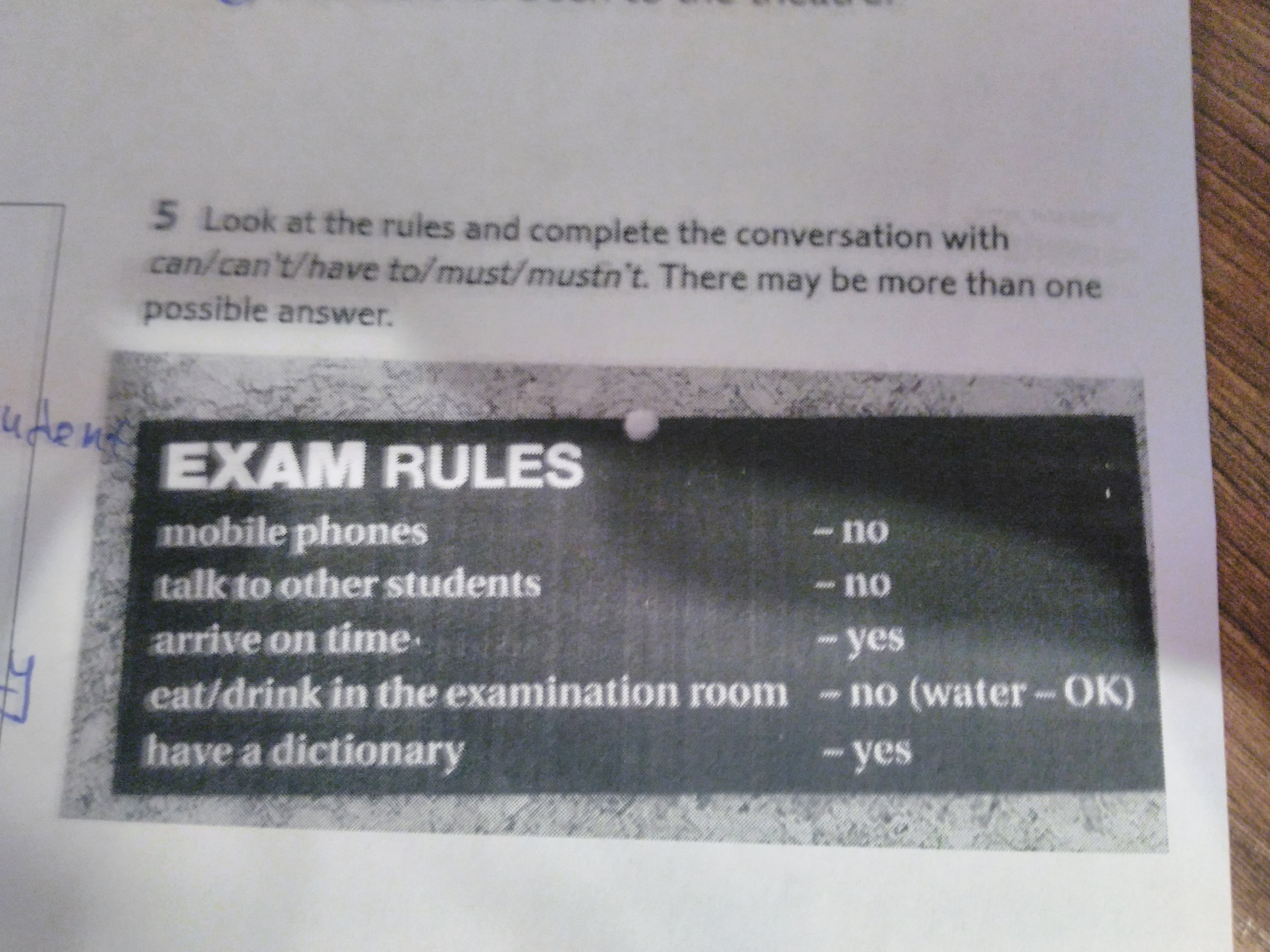 May you eat/drink in the examination room ? - No. You may drink only water.