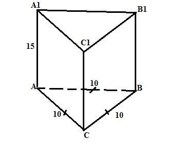 Правильная призма — это прямая призма, основанием которой является правильный многоугольник. В нашем случае в основании лежит правильный треугольник, а боковые грани - три равных прямоугольника со сторонами 10 и 15 см. =>