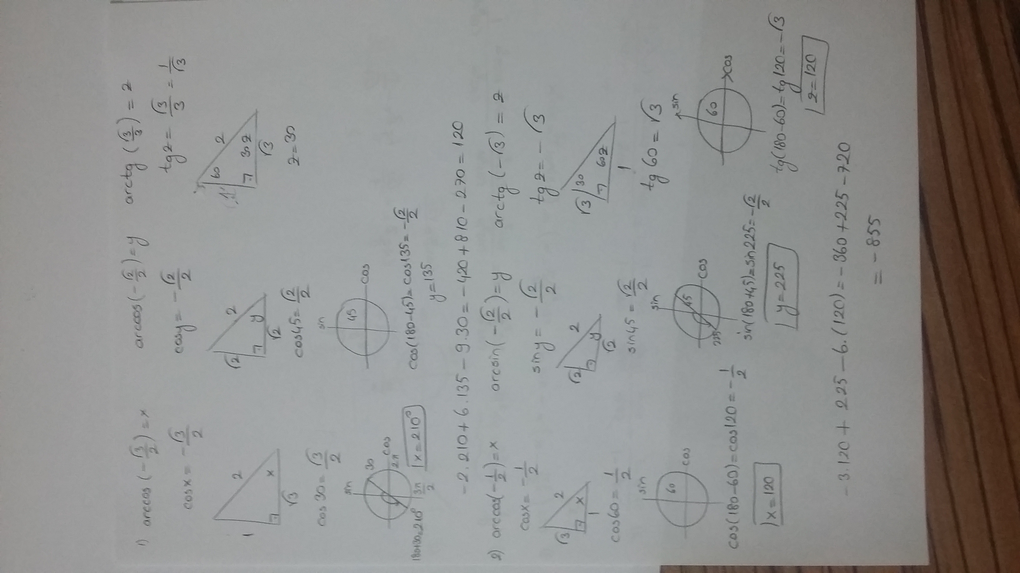 1) -2arccos(-√3/2) + 6arccos(-√2/2) - 9arctg√3/3