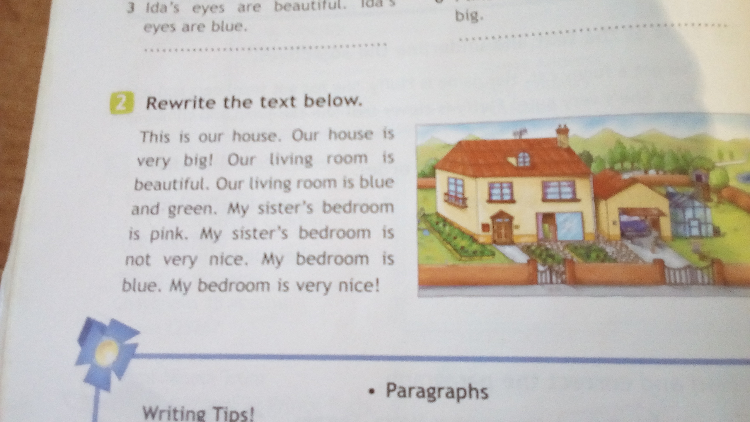это наш дом. наш дом очень большой. наша гостиная голубая и зелёная .