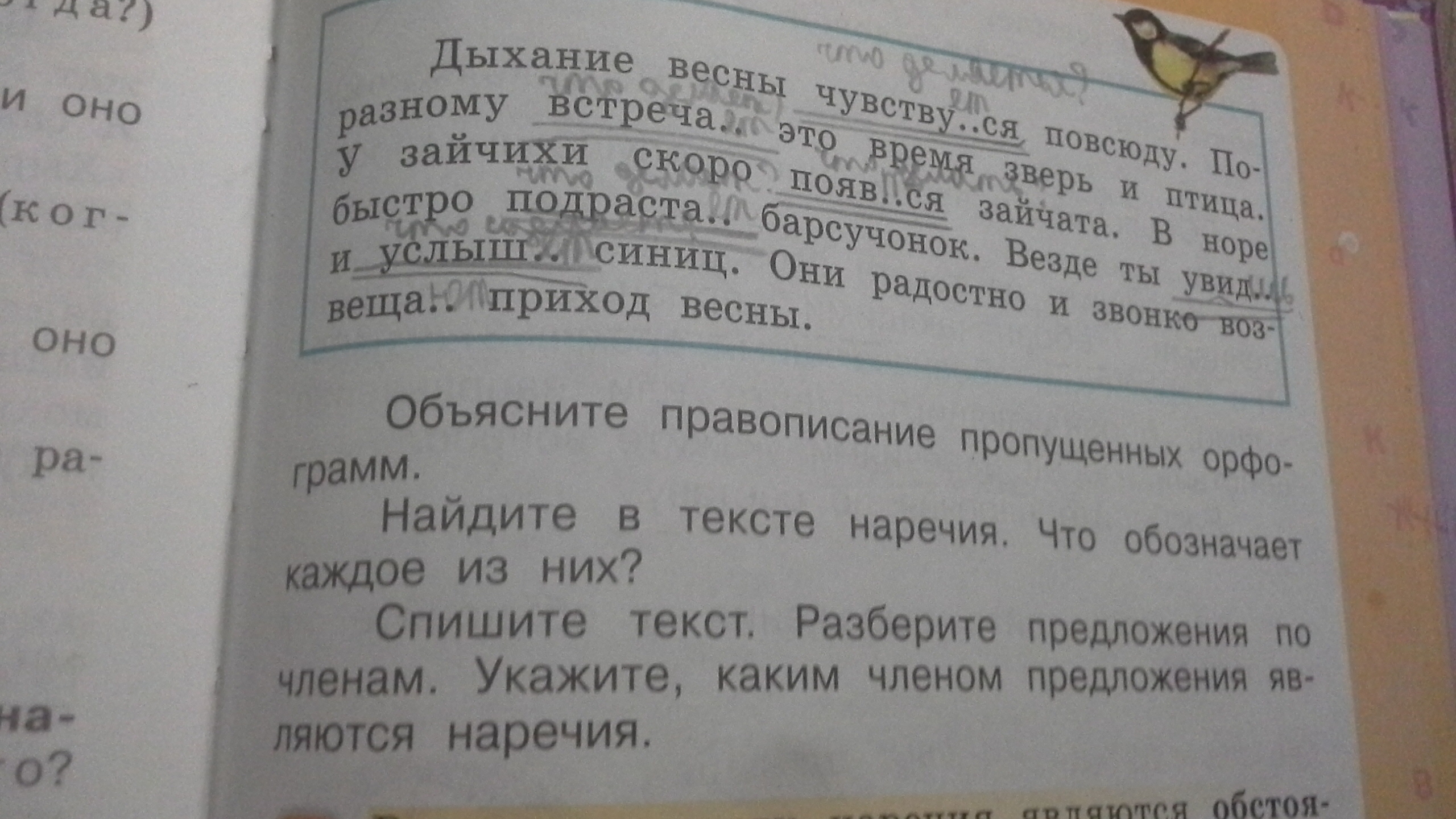 просто спиши текст и объясни орфограммы найди наречия и их спишишь после этого разберешь по членам предложениям. Вот задание и готово