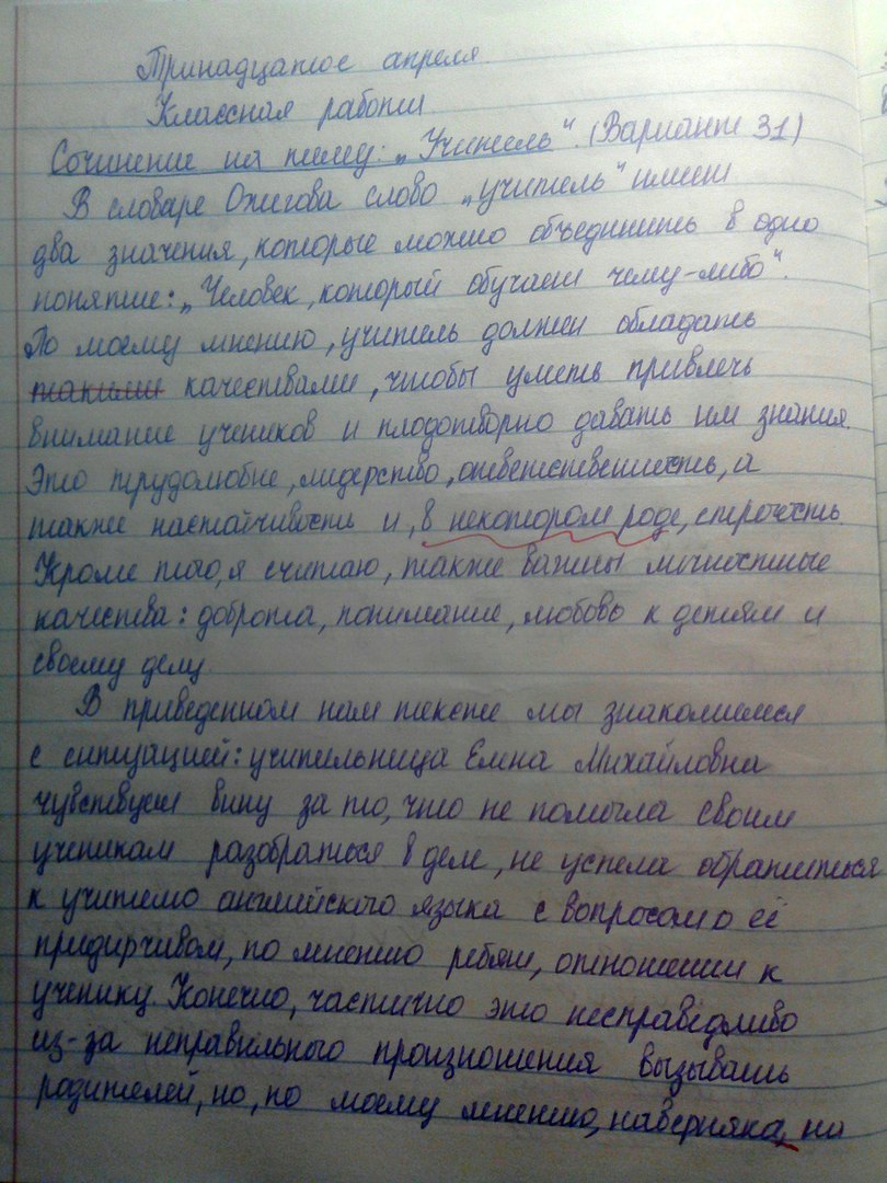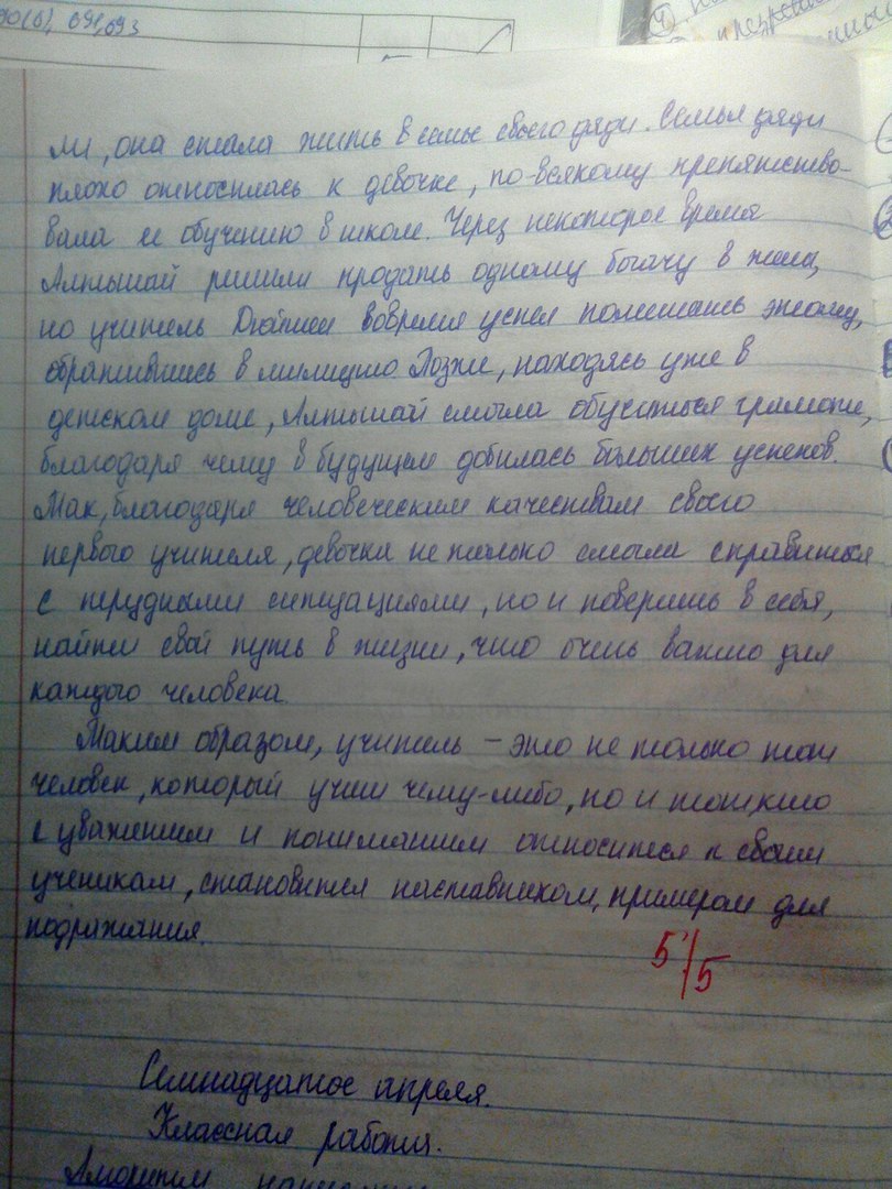 Кстати, меня учительница также выделила из класса, ей очень понравилось сочинение)
