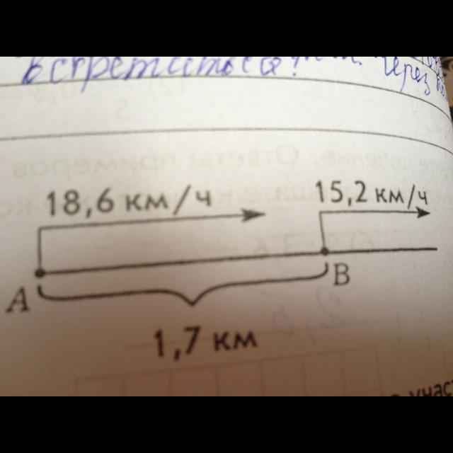Два автобуса, расстояние между которыми 1,7 одновременно, в одну сторону двинулись в путь. 1 - со скоростью 8,6 км/ч, 2 - 15,2 км/ч. В какое время они выехали, если встретились в 14:30? (Фото)