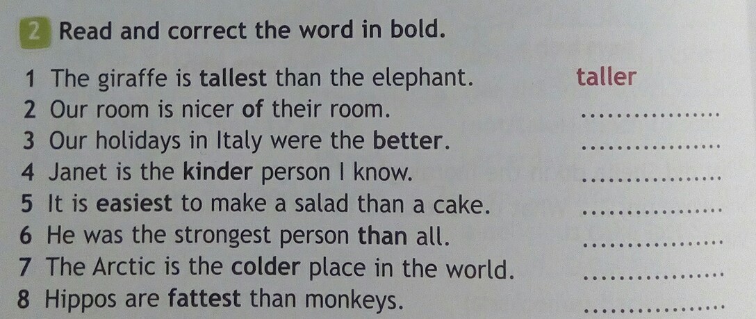 2)than;3)Bester,4)Kindest;5)easy;6)of;7)coldest;8)fatter