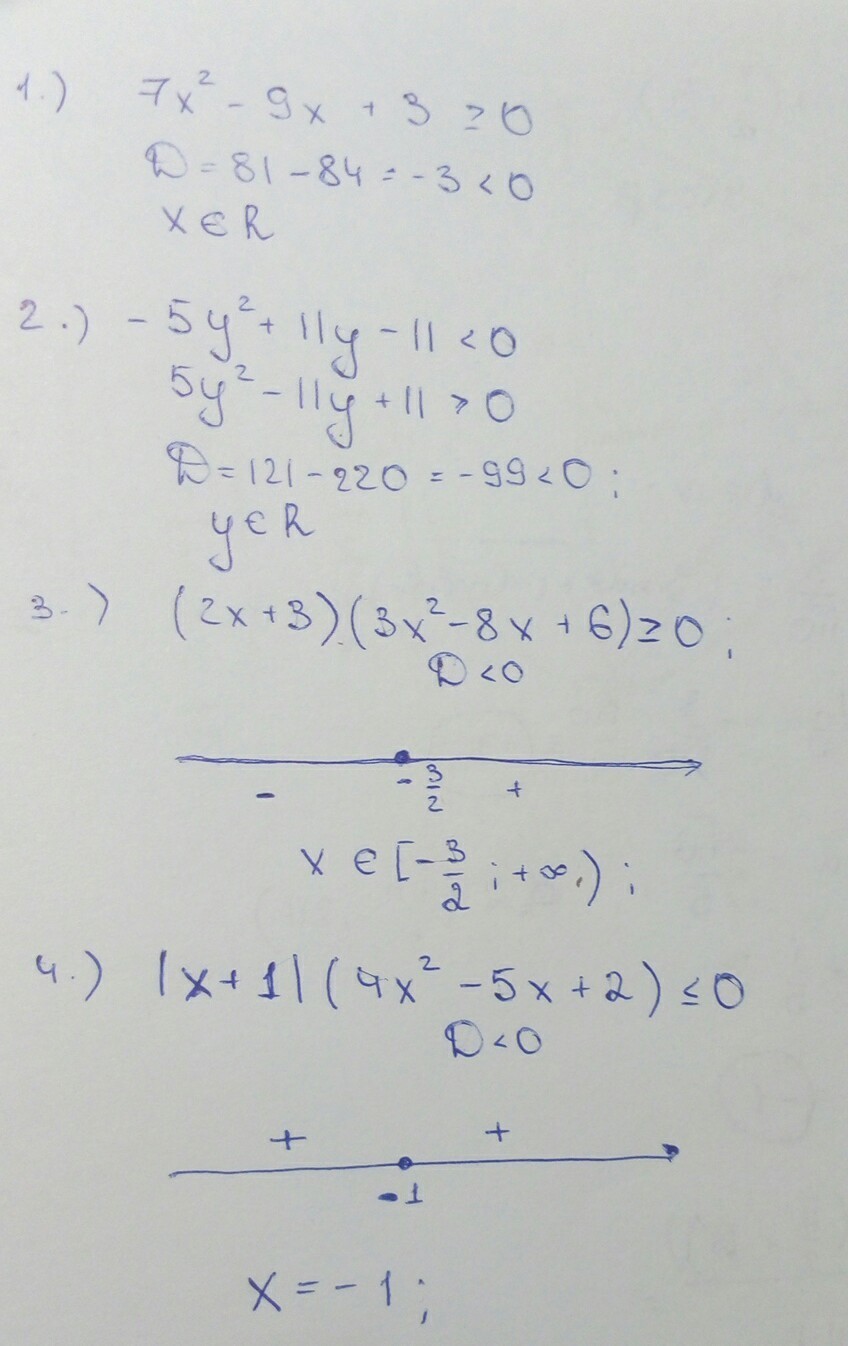 1) 7x^2-9x+3>=0;