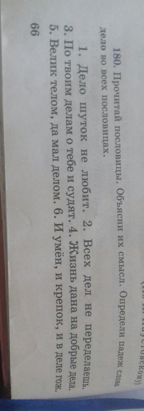 Дело шуток не любит. (И.п. Ко всякой работе нужно относиться серьезно.) Всех дел не переделаешь. (Р.п. Не гнаться за всеми делами. Оставлять время для отдыха.) 3. П.п. - Будешь хорошо выполнять хорошо свою работу, будут и к тебе хорошо относиться. 4. Р.п. Не разменивать свою жизнь на сомнительные поступки. 5. Т.п. Большой, здоровый, а ничего не делает. 6.П.п. Со всех сторон молодец.
